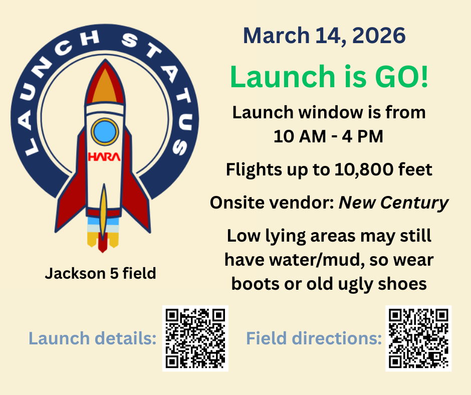 Launch information here: http://hararocketry.org/hara/monthly-club-launches/