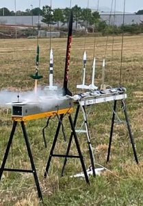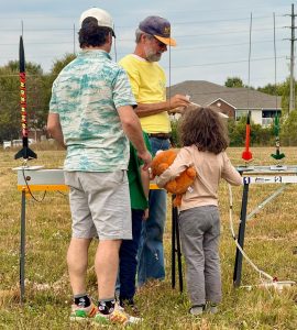 October 18 was the Blue Origin Family Launch in Research Park and HARA assisted for the third year in a row. HARA’s launch support consisted of Duane, Greg, Vince and Bill, with Duane and Bill operating our launch racks/controllers and Vince loading the pads. The kids showed up at scheduled intervals, which prevented overcrowding and allowed for a fairly leisurely pace. We launched about 15 racks of 8 low power rockets between 2 and 6 PM, making for a total of 120 flights, which is pretty good; also recruited a couple of adults who plan to show up at a meeting and may join HARA.