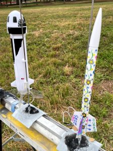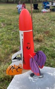 1) Lots of Estes Vikings and Wizards; some Alpha’s, Amazons and Blue Origin New Shepards (note the New Shepard does not fly well on an A8-3 – chute deployment is very near ground level).