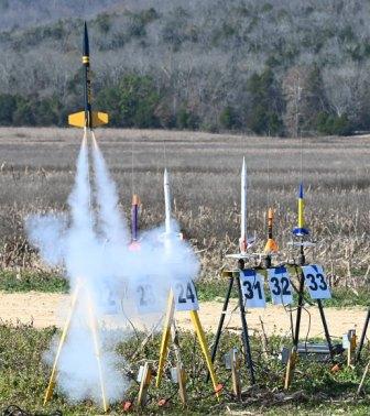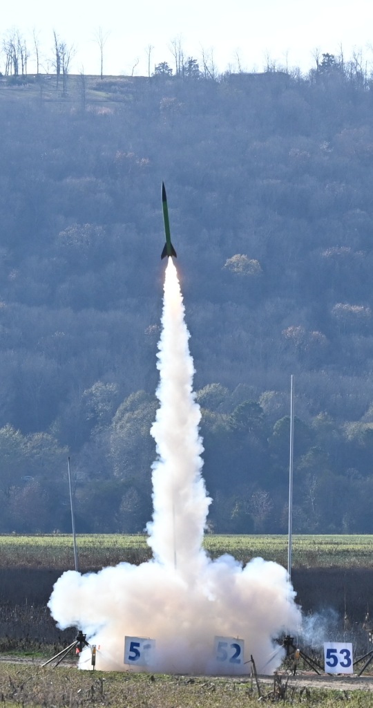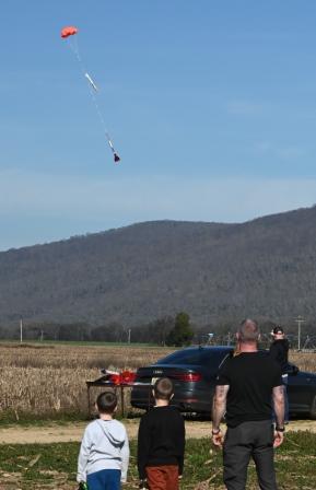 While Geminid meteors purportedly skimmed the upper atmosphere the club enjoyed the monthly launch in calm wind and 60 degrees in the lower atmosphere. Rocketeers made up for the rained out November date with a steady rate of assorted firings. Attendance was good despite being so close to the holiday season.